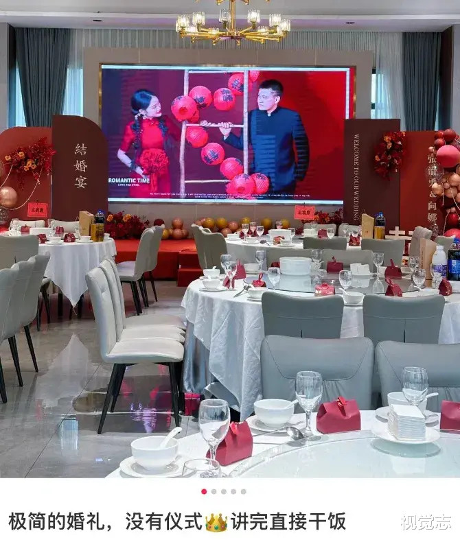 没主持人带节奏,没有泪点设计,不给全场安排情绪任务。就只是两个人站在一起,说清楚“我们愿意”,然后吃饭、碰杯、落座。
